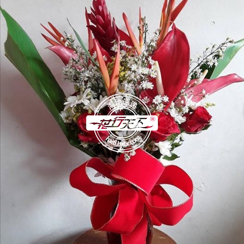 红玫瑰、白雏菊、红掌、天堂鸟组成、样式如图.
