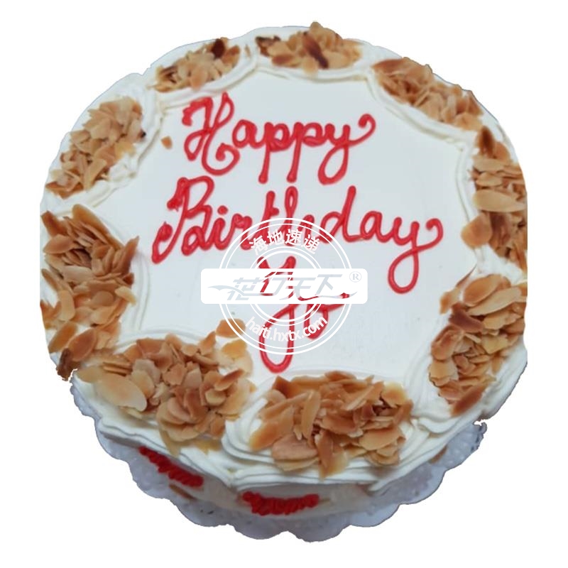 描述: 杏仁生日蛋糕、直经6寸、样式如图。